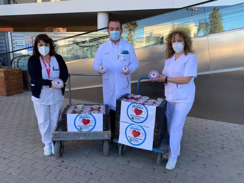 Un reparto que ya se ha realizado en el Virgen de la Arrixaca y el Reina Sofía de Murcia, en el Santa María del Rosell y el Santa Lucía de Cartagena, en el Hospital de Elche y en el Vega Baja de Orihuela. Además, la semana próxima pasará por el Hospital de Albacete, el Morales Meseguer de Murcia y Los Arcos de San Javier. "No podíamos apoyarlos de otra manera que no fuera con productos ricos y saludables", indica.