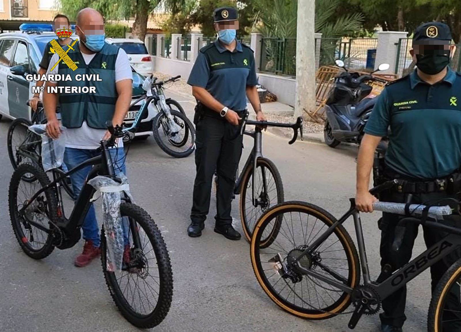 De esta forma, la Benemérita ha recuperado 12 bicicletas de montaña y carretera, propulsadas a motor y valoradas en 40.000 euros, que han sido devueltas a su legítimo propietario que se desplazó desde la capital española a Murcia para identificar y recuperar sus bienes.