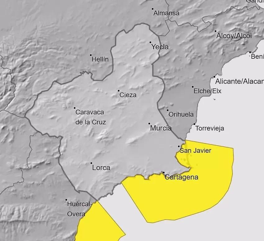El aviso amarillo por fenómenos costeros activado para este sábado en el Campo de Cartagena y Mazarrón se extenderá hasta las 15.00 horas, según la última actualización publicada por la Agencia Estatal de Meteorología (Aemet).