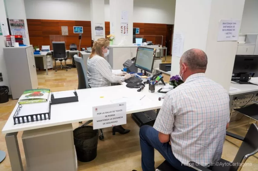 El contagio de Covid-19 de siete funcionarios ha obligado a cerrar desde este jueves y hasta previsiblemente el lunes la atención presencial en el Registro General del Ayuntamiento de Cartagena, ubicado en el Edificio Administrativo de San Miguel.
