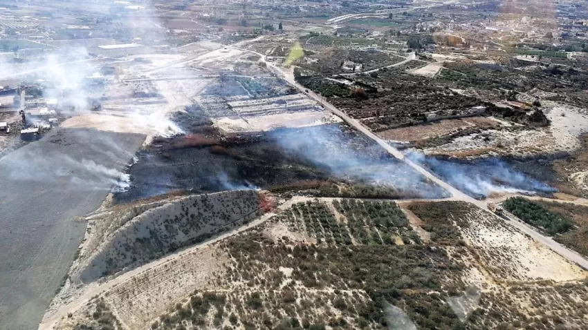 El '1-1-2' ha recibido llamadas informando del incendio a las 12.36 horas. Hasta el lugar se han dirigido bomberos del Consorcio de Extinción de Incendios y Salvamento (CEIS) de la Región de Murcia que, ante la magnitud del fuego y el fuerte viento, han pedido el apoyo de un helicóptero y su brigada forestal helitransportada.
