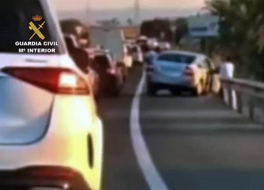 La investigación se inició cuando la Guardia Civil tuvo conocimiento de la existencia de un vídeo en redes sociales en el que aparecían dos individuos empujando un turismo por un desnivel hacia la vía de servicio de la carretera RM-12, a la altura de la salida hacia Mar de Cristal, lo que ocasionó una situación de riesgo para el resto de usuarios de la vía.