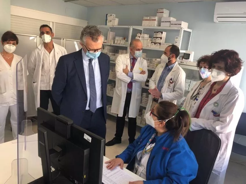 En su encuentro con los profesionales responsables de este nuevo recurso, Pedreño destacó el avance que ha supuesto "la instauración de la telefarmacia y la dispensación de medicamentos a domicilio, lo que reduce considerablemente el número de desplazamientos al hospital". El nuevo espacio de farmacia cuenta un área de validación y preparación de los tratamientos parenterales y otra área de dispensación y atención farmacéutica a pacientes externos.