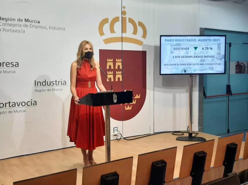 La directora general del Servicio Regional de Empleo y Formación (SEF), Marisa López Aragón, ha indicado que "este intenso descenso del paro hace que la Región encadene seis meses consecutivos de caídas, y que registre cifras de desempleo inferiores a las del inicio de la pandemia, esto es, a las de febrero de 2020".