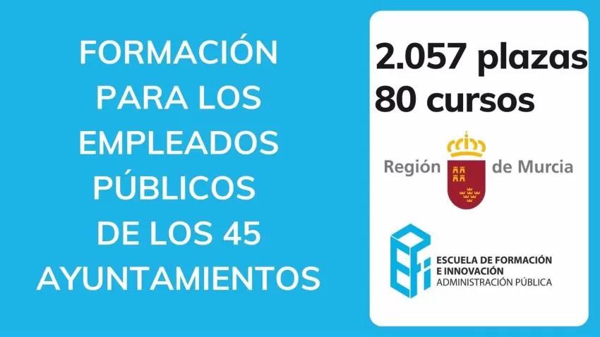 La Consejería de Economía, Hacienda y Administración Digital ofrece 2.057 plazas de formación para los empleados públicos de los 45 ayuntamientos, que pueden participar en 73 cursos, de los que se realizarán 80 ediciones. Esta oferta favorece el aprendizaje continuo de las plantillas para prestar el mejor servicio a los ciudadanos y avanzar en la digitalización de la administración local, según informaron fuentes del Gobierno regional en un comunicado.