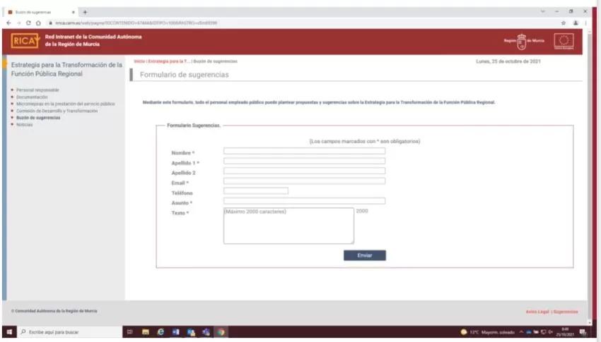 El buzón de sugerencias para la Estrategia para la Transformación de la Función Pública regional ya está disponibles para su uso en el siguiente enlace de la intranet corporativa de la Comunidad Autónoma.