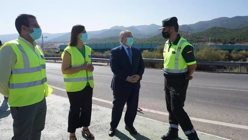 Vélez, acompañado de la jefa Provincial de Tráfico, Virginia Jerez, y del comandante de la Agrupación de Tráfico de la Guardia Civil, José Ángel Jurado, ha presentado sobre uno de los puentes de la A-30, a la altura de La Alberca, en Murcia, los detalles de un dispositivo que se inicia a las 15.00 horas de hoy y se prolongará hasta las 24.00 horas del próximo 29 de agosto.