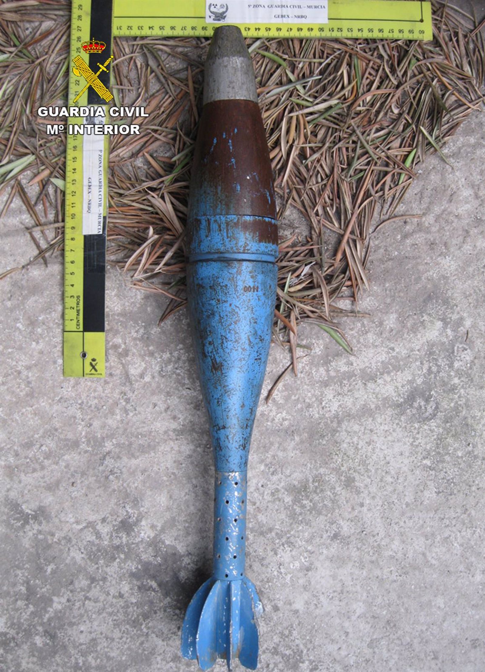 La Guardia Civil de la Región de Murcia ha retirado del interior de un vehículo que iba a ser desguazado en Alguazas una granada de mortero de 81 mm., que, aunque tenía apariencia de real, carecía de carga explosiva.