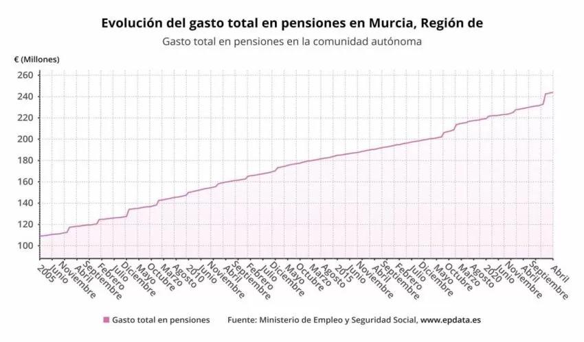 El número de pensiones ha aumentado un 0,86% en la Comunidad en el último año, hasta 255.588. De esta forma, Murcia representa el 2,56% de las pensiones en España.