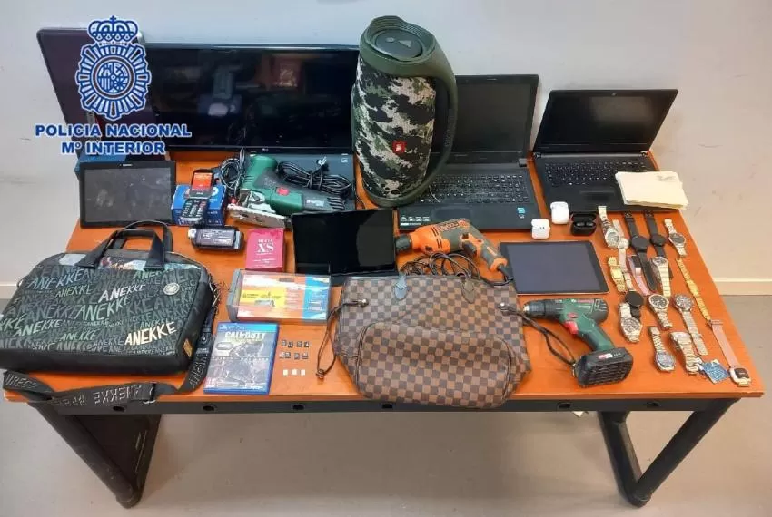 Ante los claros signos de nerviosismo mostrados por el detenido y las respuestas incongruentes que facilitaba a los agentes, los policías procedieron a revisar el interior del coche que conducía encontrando en el interior del mismo una gran cantidad de objetos electrónicos, herramientas y joyas tales como; 31 teléfonos móviles, 4 ordenadores portátiles, 2 tablets, un televisor LG, dos taladros, una sierra vertical, dos bolsos, 13 relojes, 45 pulseras, 20 colgantes, 27 collares, 81 pares de pendientes y un lingote de plata.