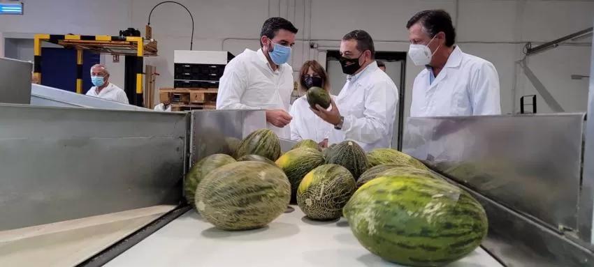 Durante la visita se hizo también balance de la producción de sandía. El consejero destacó que "el pasado año se produjeron 206.000 toneladas y esta campaña se estima que se repitan las cifras a pesar de la climatología adversa que, en determinados momentos, ha condicionado el proceso de la floración".