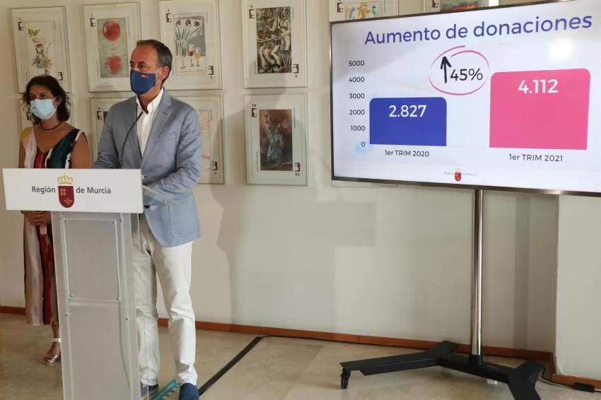 La Consejería de Economía, Hacienda y Administración Digital ha advertido de un repunte del 45 por ciento de las donaciones en la Región de Murcia en el primer trimestre de 2021 con respecto al mismo periodo del año anterior, informaron fuentes de la Comunidad en un comunicado.