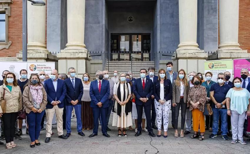 El objetivo de este año es reclamar que la salud mental es un derecho necesario para todas las personas más allá de su situación personal, económica o social. En el acto celebrado este viernes en la plaza de la Merced de la Universidad de Murcia, han estado presentes el consejero de Salud, Juan José Pedreño, la vicepresidenta del Gobierno Regional, Isabel Franco, el alcalde de Murcia, José Antonio Serrano, el presidente de la Asamblea Regional, Alberto Castillo, además de varios diputados autonómicos y el Presidente del CERMI Región de Murcia, Pedro Martínez.