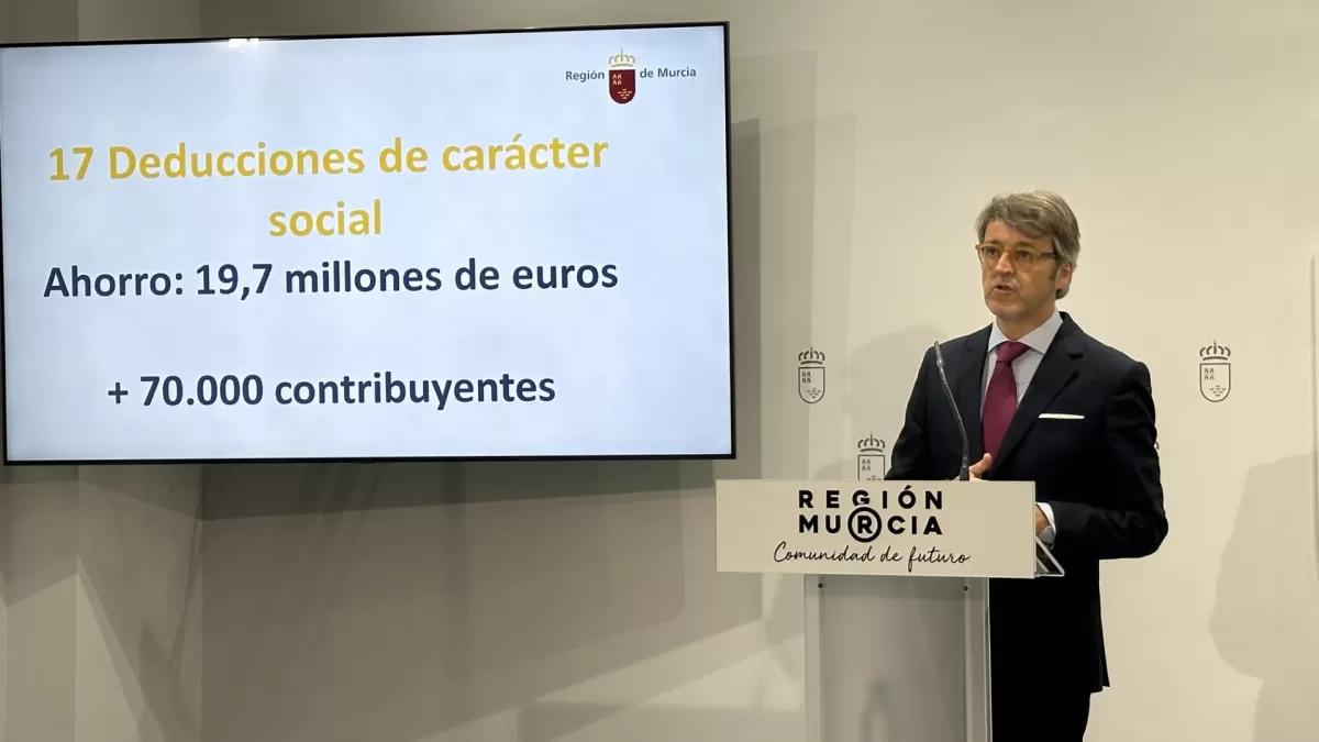 El consejero de Economía, Hacienda y Empresa, Luis Alberto Marín, compareció hoy para informar sobre las novedades en esta campaña de la renta en la Región, entre las que destacan la entrada en vigor de dos nuevas deducciones.