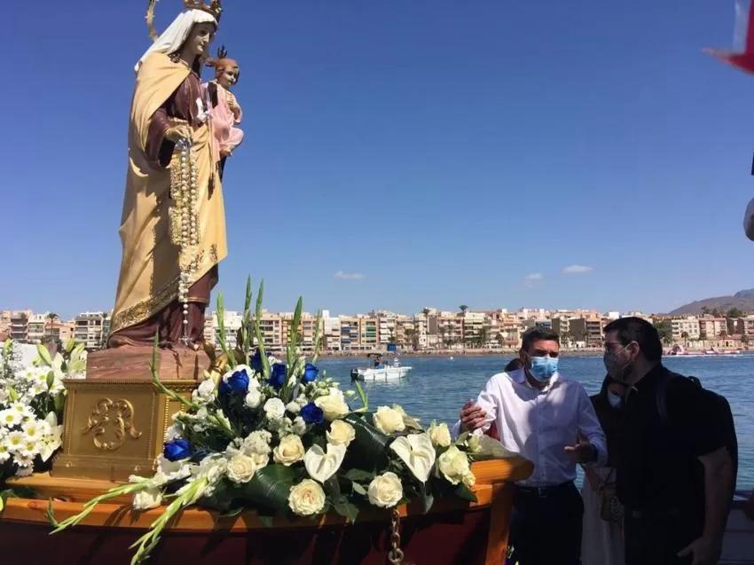 El consejero de Agua, Agricultura, Ganadería, Pesca y Medio Ambiente, Antonio Luengo, ha participado este viernes en la tradicional procesión marítima de la Virgen del Carmen, celebrada en aguas de la bahía de Mazarrón por los pescadores de la Cofradía asentada en la localidad.