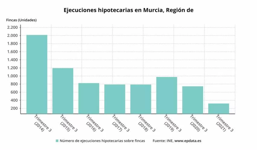 La Región de Murcia registró 155 ejecuciones hipotecarias iniciadas sobre viviendas en el tercer trimestre de 2021, la octava mayor cifra por comunidades autónomas.