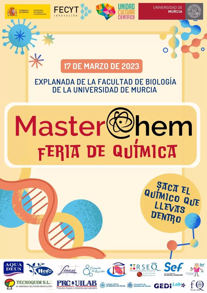 MasterChem es una iniciativa de la Unidad de Cultura Científica y de la Innovación (UCC+i) del Vicerrectorado de Transferencia, Comunicación y Divulgación Científica, que cuenta con la colaboración de la Fundación Española para la Ciencia y la Tecnología (FECYT) del Ministerio de Ciencia e Innovación, y el apoyo de la Academia de Ciencias de la Región de Murcia, la Real Sociedad Española de Química, el Colegio de Químicos de la Región, el Centro Nacional de Referencia Familia Profesional Química y varias empresas.