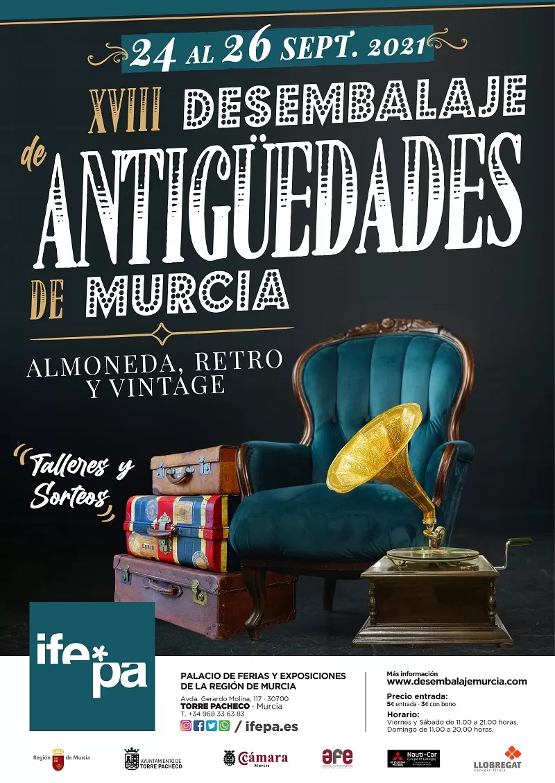 Desde hoy y hasta el domingo 26 de septiembre, el Palacio de Ferias y Exposiciones de la Región de Murcia-IFEPA, en Torre Pacheco, se convertirá de nuevo en el gran referente para los apasionados de las antigüedades.
