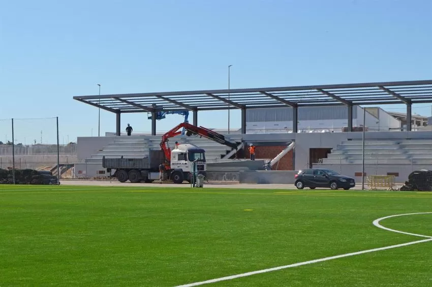 La instalación también mejorará sus prestaciones con las obras ya en marcha para construir un vestuario-grada con 342,24 m2 destinados a vestuarios de los que tres serán para deportistas y dos para árbitros, almacenes y aseos públicos.