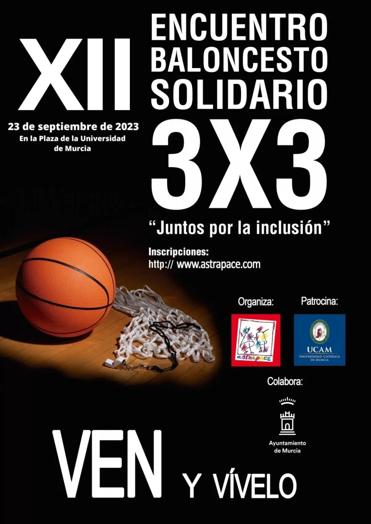 El sábado 23 de septiembre tendrá lugar el XII Encuentro de Baloncesto Solidario 3x3 de Astrapace, que se celebra en la Plaza de la Universidad (La Merced) de Murcia.