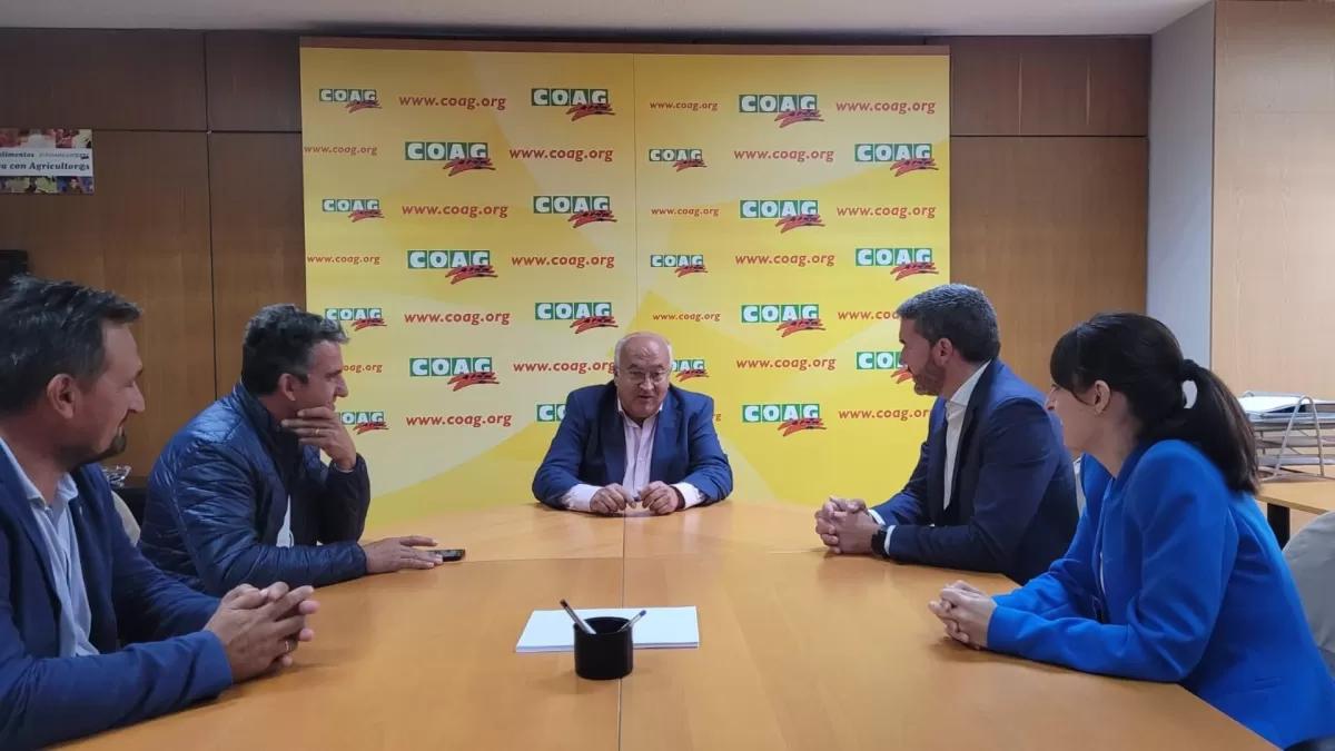 El consejero en funciones de Agua, Agricultura, Ganadería y Pesca, Antonio Luengo, y los secretarios nacional de COAG, Miguel Padilla, y regional, José Miguel Marín, han coincido este miércoles, en el marco de una reunión de trabajo celebrada en Madrid, en la necesidad de impulsar un nuevo modelo de seguro agrario.