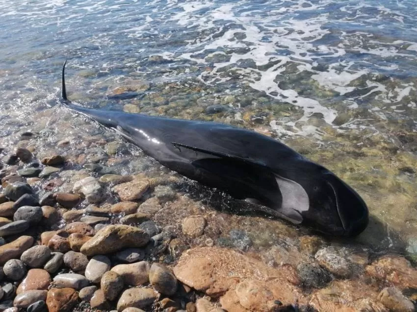 Un ejemplar de calderón común ha sido encontrado muerto este sábado por la mañana en la playa de San Ginés de La Azohía, término municipal de Cartagena, según han informado fuentes del Centro de Coordinación de Emergencias.