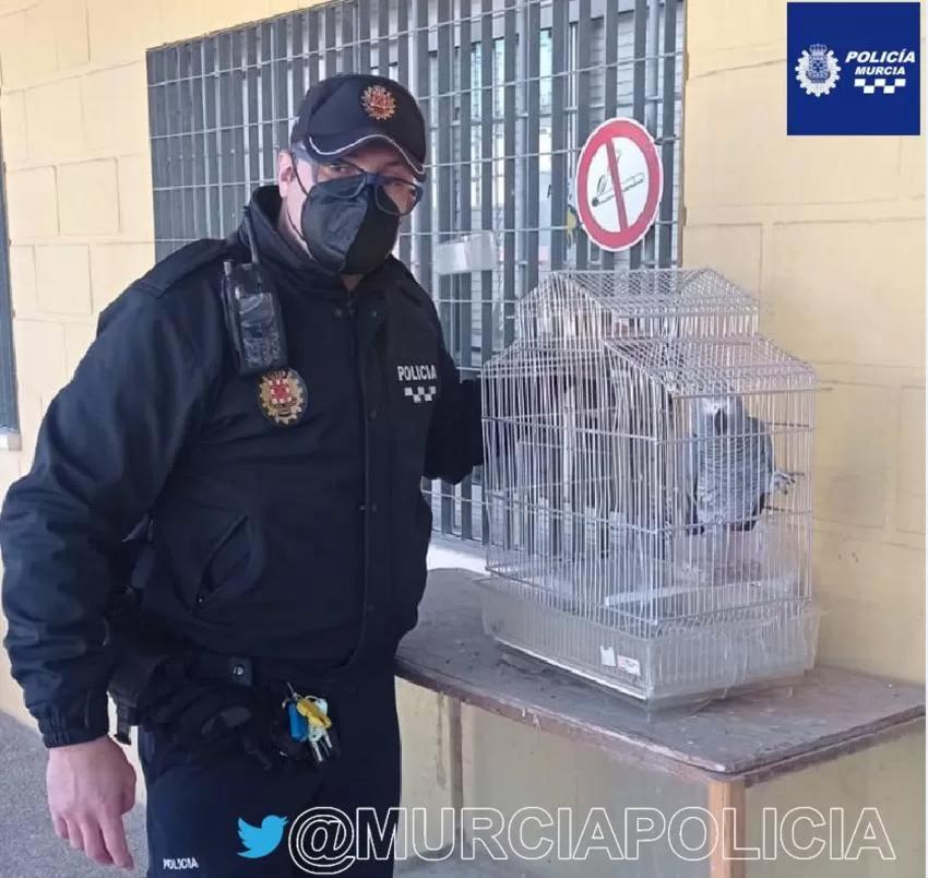 La Policía Local de Murcia ha publicado un mensaje en sus redes sociales buscando al propietario de un loro yaco que se ha perdido y ha sido encontrado este viernes por la mañana por un vecino en el barrio de la Flota.