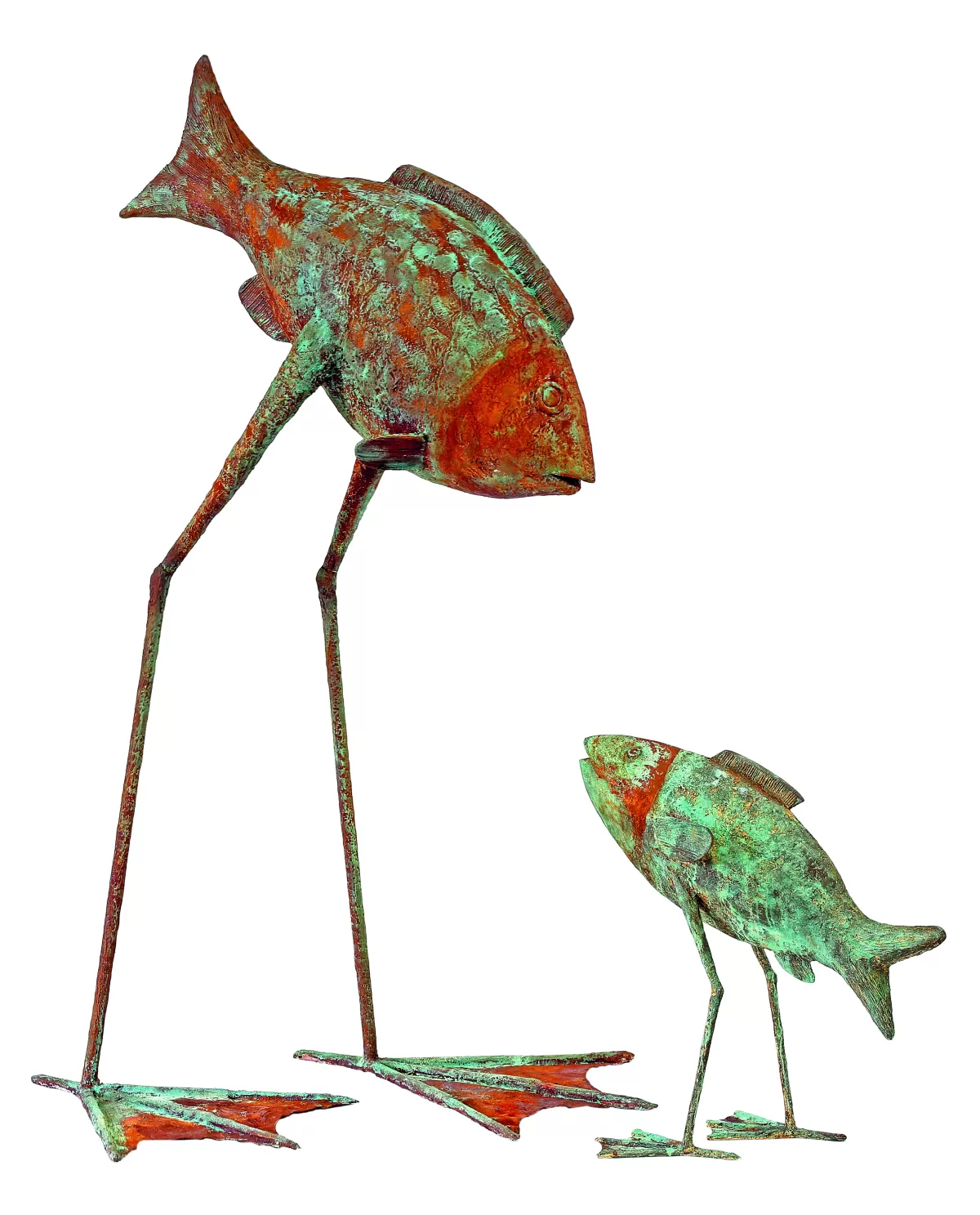 En los primeros ámbitos (patio y sala de recepción), se muestran esculturas figurativas, son obras de gran tamaño, en poliéster patinado o escayola. En ellas, Blas Miras se adentra en la experimentación con la escultura e investiga las posibilidades de una obra de gran tamaño (“El pez grande ayuda al pez chico” o “Pez pato”) y la figura del cuerpo humano (“Muchacho y Muchacha con pez”).