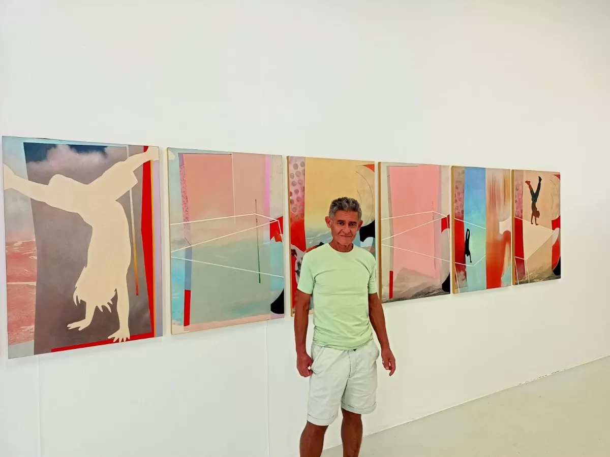La muestra consta de 14 piezas que vienen a resumir gran parte de su trabajo pictórico en el que crea espacios ilusorios y experimenta con las formas y las texturas. Las obras funcionan tanto de forma individual como en conjunto generando una dinámica de juego con los elementos originales de la Sala de Máquinas del Centro Párraga.
