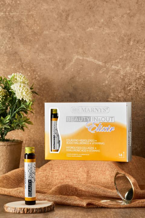 Podemos complementar nuestra dieta, para dar un plus de vitalidad a nuestra piel y cabello recurriendo a suplementos como Beauty In & Out Elixir, de MARNYS, que contiene colágeno hidrolizado, ácido hialurónico, semillas de uva, vitaminas y minerales, en un cómodo formato bebible. Estos ingredientes actúan desde el interior para combatir el envejecimiento provocado, entre otros, por el sol. Los resultados son visibles en la piel y en el cabello, con un aspecto joven, atenuando las líneas de expresión y aportando brillo al pelo y a las uñas.