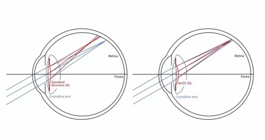 Los resultados de la investigación remarcan que los pacientes implantados con una nueva lente Art25 de menisco invertido presentan una cantidad reducida de miopía y astigmatismo en el campo visual periférico en comparación con los pacientes implantados con lentes biconvexas estándar.