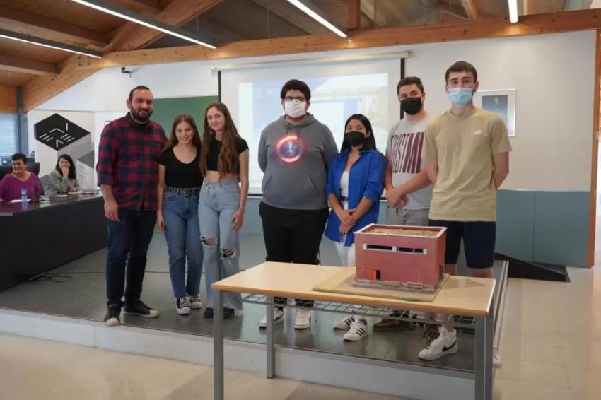 Los alumnos de Secundaria del IES Antonio Menárguez Costa de Los Alcázares Carlos Martínez Ropero, Yeray Hernández López, Kilian Carpintero, Keira Samy Fajardo Baque y Chaimaa Hammada, tutorizados por Javier Fernández Moreno, ganaron el primer premio nacional en la categoría de ESO con su maqueta con estructura de hormigón del pabellón de educación física que plantean rehabilitar y en el que proponen instalar un foso bomba para extraer el agua en caso de inundación.