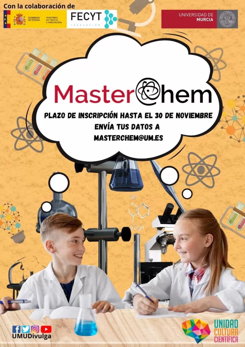 La Universidad de Murcia (UMU), a través de su Unidad de Cultura Científica y la de Innovación (UCC+i), consolida la IV edición de MasterChem, un concurso de química de referencia nacional que tiene por objetivo potenciar las vocaciones químicas de los jóvenes de la Región de Murcia y las provincias de Alicante, Almería y Albacete a través de la experimentación, informaron fuentes de la institución docente en un comunicado.