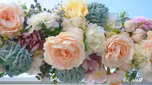 Otra muy buena recomendación para decorar con las flores artificiales en forma de elemento decorativo es hacer una guirnalda con las mismas. Para ello, solo necesitas amarrar unas 3 o 4 y colgarlas en donde más te guste como luzcan.