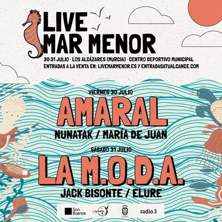 El festival 'Live Mar Menor' ha completado el cartel de conciertos del 30 y 31 de julio. Amaral y Jack Bisonte actuarán en Los Alcázares junto a otros artistas ya confirmados como La M.O.D.A, Nunatak, Maria de Juan y Ellure.