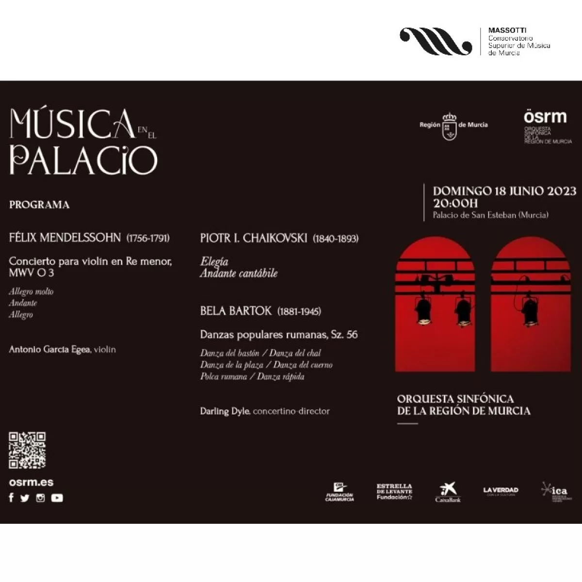 Esta actuación será el anticipo del ciclo de conciertos 'Música en el Palacio', que tendrá lugar del 26 de junio al 2 de julio en el mencionado escenario, organizado por MurciArt Festival y la Orquesta Sinfónica de la Región de Murcia.