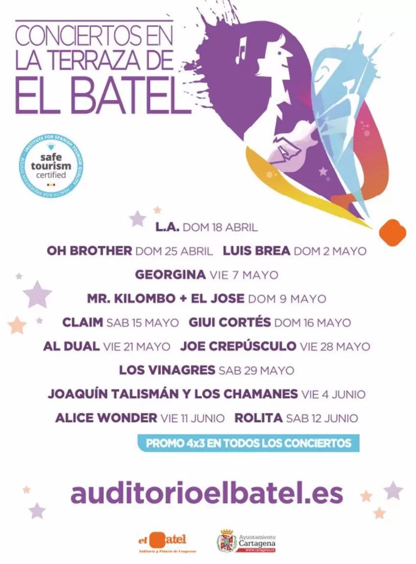 El escenario de la terraza de la Muralla del auditorio El Batel, en Cartagena, reabre sus puertas esta primavera para ofrecer conciertos al aire libre, tanto al mediodía como al atardecer. Entre los meses de abril y junio se sucederán seis conciertos y otros siete podrán presenciarse al caer el sol, informaron fuentes municipales en un comunicado.