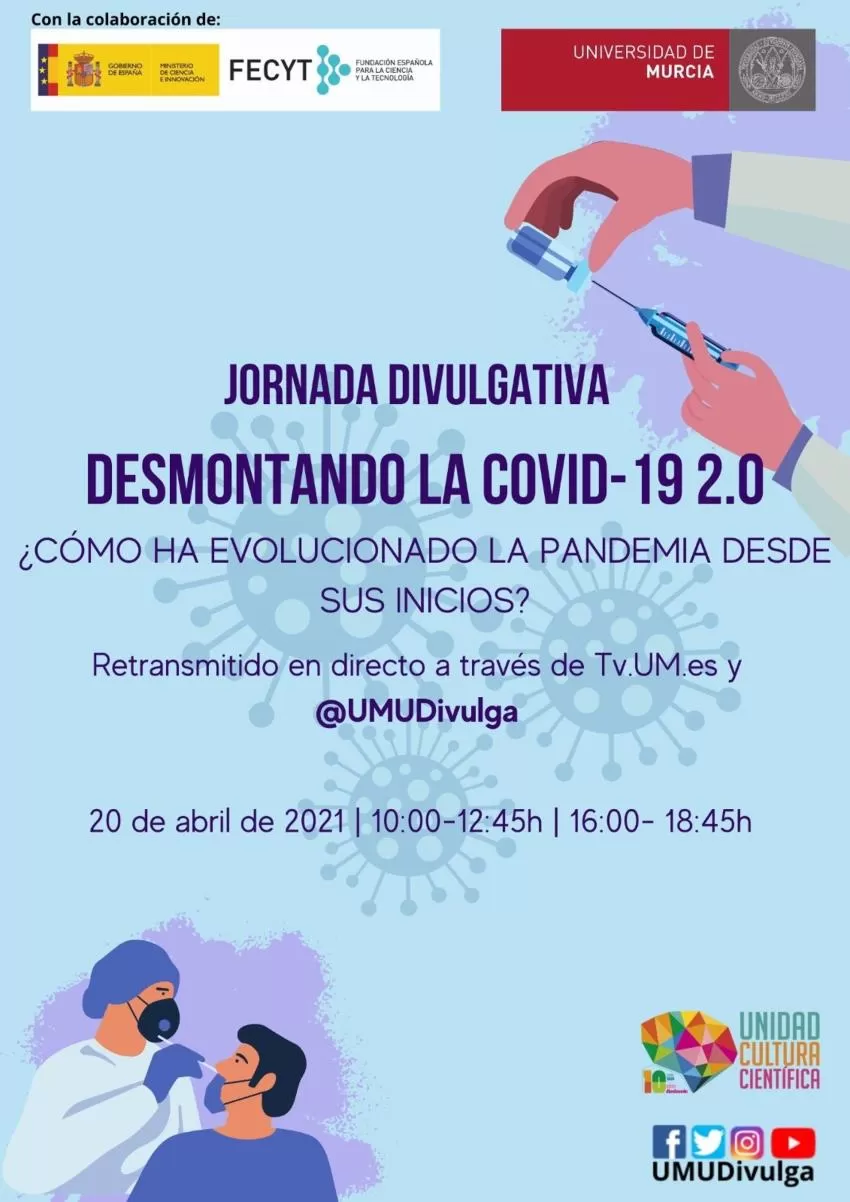 El Vicerrectorado de Transferencia y Divulgación Científica de la Universidad de Murcia (UMU), a través de su Unidad de Cultura Científica y de la Innovación (UCC+i), ha organizado la segunda edición de la jornada divulgativa 'Desmontando la COVID-19: ¿Cómo ha evolucionado la pandemia desde sus inicios?', que será retransmitida este martes en Tv.um.es ('https://tv.um.es/video?id=144471').