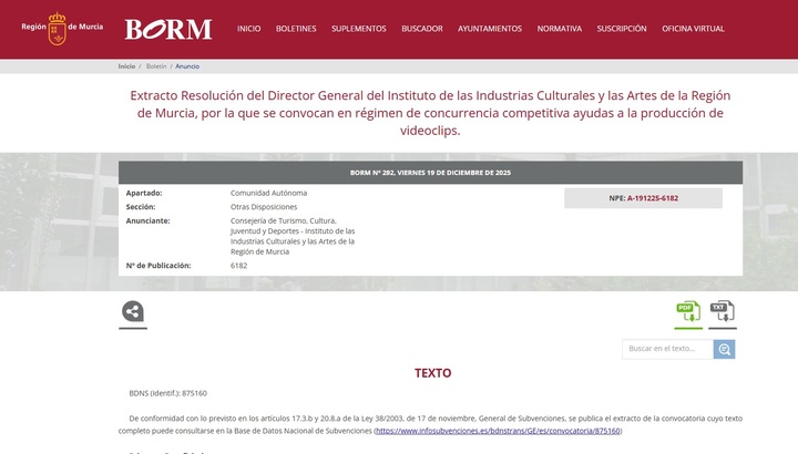 El Gobierno regional destina 100.000 euros a la creación de videos musicales en Murcia