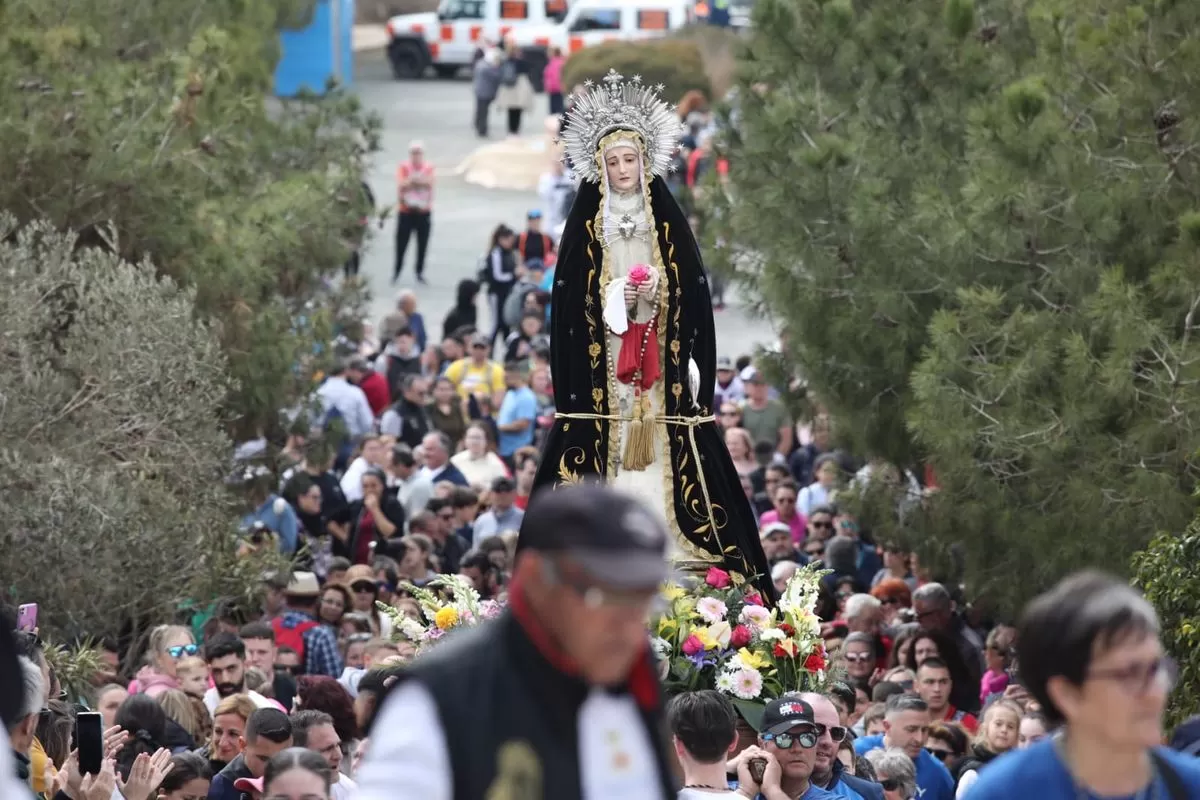 Unos 200 romeros han acompañado este domingo 10 de marzo, un año más, a la Virgen de la Soledad del Monte Calvario hasta su ermita, donde a su llegada se ha celebrado una misa en su honor, a la que han asistido la alcaldesa de Cartagena, Noelia Arroyo, que este año ha sido nombrada Madrina de Honor de la Virgen, y el concejal de Infraestructuras, Diego Ortega, elegido Romero de Honor.