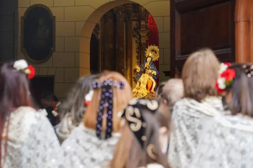 Bandas de gaitas, cornetas y tambores, agrupaciones de coros y danzas, rondallas y cuadrillas del Campo de Cartagena conformarán la comitiva que actuará a su llegada ante la patrona, donde depositarán las flores con las que se irá confeccionando un manto floral alrededor de la Virgen.