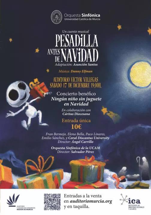 La Orquesta Sinfónica de la Universidad Católica de Murcia (UCAM) interpretará la 'setlist' de la película 'Pesadilla antes de Navidad', del cineasta Tim Burton, el próximo sábado de 17 de diciembre, a las 19.00 horas, en el Auditorio Víctor Villegas de Murcia.