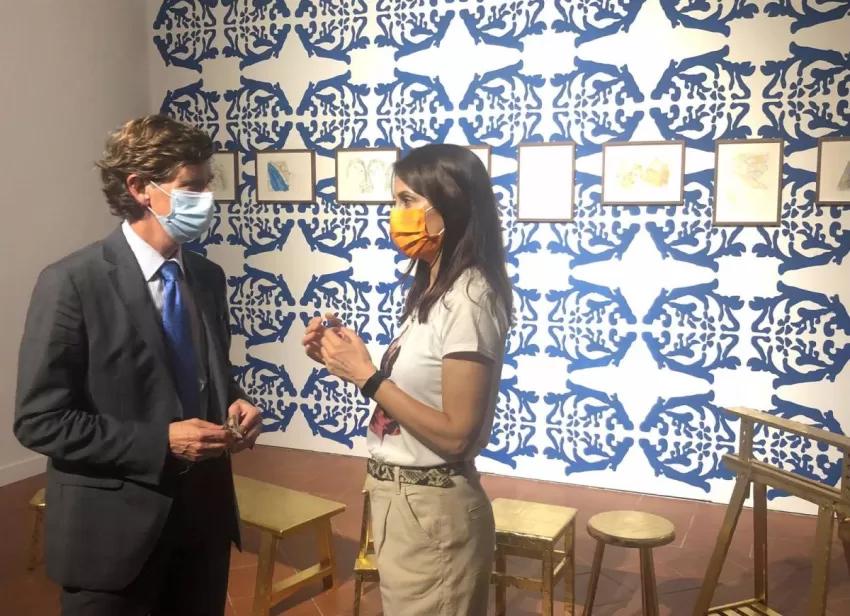 El director general del instituto de las Industrias Culturales y las Artes, José Ramón Palazón, visitó los trabajos del montaje de las piezas en la Sala Verónicas esta semana y destacó que "Diana Larrea nos va a presentar las creaciones que realiza a partir de las investigaciones y trabajo que inició hace cuatro para dar a conocer y poner en valor a mujeres artistas desde la Edad Media".