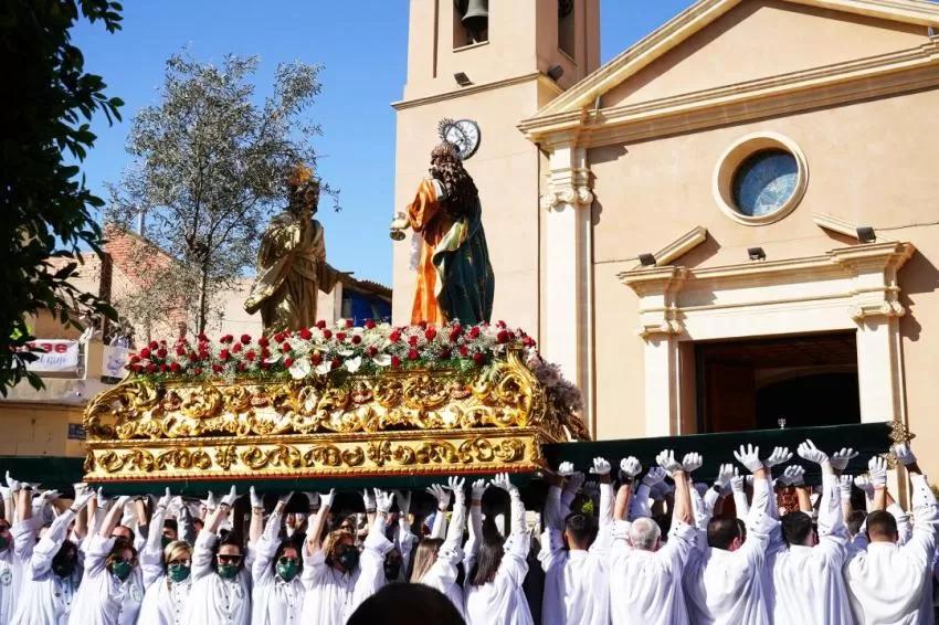 Domingo de júbilo y alegría en Las Torres de Cotillas con la procesión del Resucitado. La Semana Santa 2022, la del reencuentro con los desfiles pasionales tras la pausa experimentada por la pandemia, ha dado por terminados sus actos hoy con esta procesión que ha partido a primera hora de la iglesia de Nuestra Señora de la Salceda.