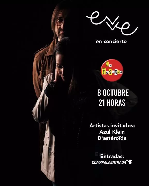El grupo murciano Evve, tándem que integran la voz íntima y delicada de Evelyn Piñero y el personal y característico sonido de Bienve Campoy a la guitarra, ofrecen un concierto este sábado, a partir de las 21.00 horas, en La Yesería (calle Santa Quiteria, 22, Murcia).