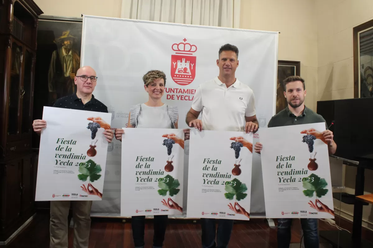 La concejala de Turismo, Isabel Pérez, y el concejal de Cultura, Daniel Jiménez, han presentado, acompañados del presidente del Grupo de Coros y Danzas de Yecla de la Asociación Regional de Francisco Salzillo, José Manuel Gil, y del coordinador de la Ruta del Vino de Yecla, Rubén Soriano, la Fiesta de la Vendimia y Festival Nacional de Folclore de Yecla 2023. Ambos eventos se celebran el próximo el fin de semana.