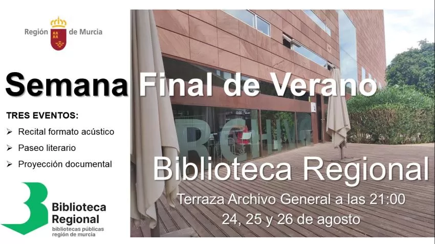 La Biblioteca Regional recuperará la actividad presencial en la última semana del mes con el ciclo 'Agosto cultural', que incluye tres eventos que se desarrollarán en la terraza del Archivo General, informaron fuentes de la Comunidad en una nota de prensa.