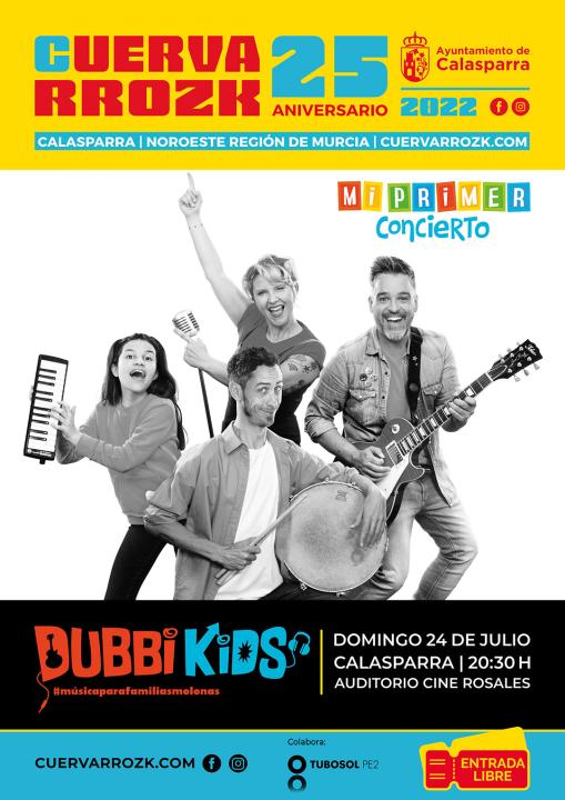 El CUERVARROZK 25° Aniversario también llega para los más pequeños de la casa con la actuación de DUBBI KIDS -Mi Primer Concierto - es una divertida experiencia en vivo para los más pequeños, un musical infantil con las versiones más locas de los 80 y 90 para disfrutar en familia el domingo 24 de julio ( 20.30 h | Auditorio Cine Rosales | Entrada libre).