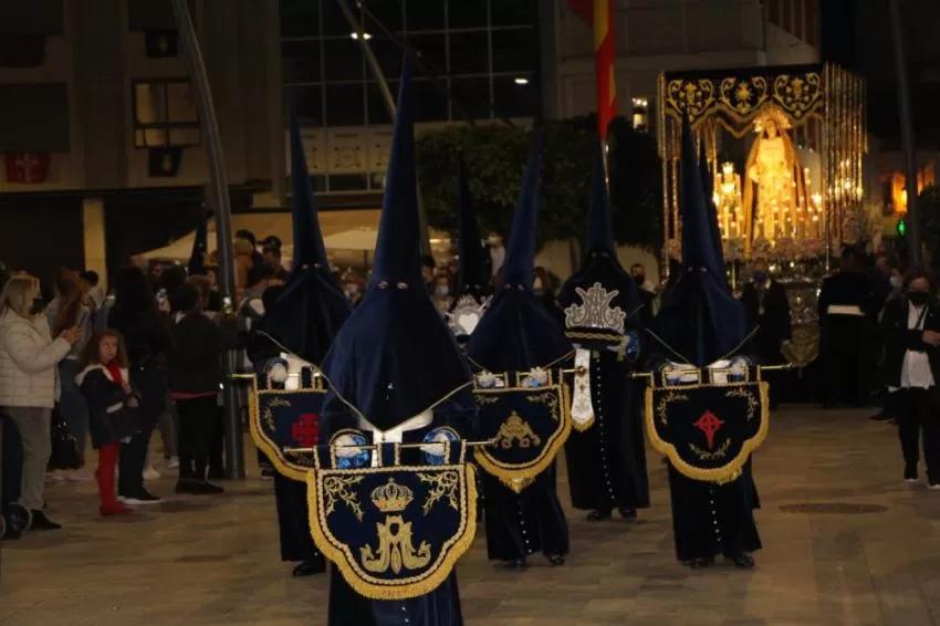 La cofradía de la Virgen de Los Dolores, una de las más longevas de la Semana Santa pinatarense, presidió la primera de las procesiones solemnes de 2022, en un desfile marcado por la emoción de nazarenos y cofrades por volver a las calles tras el obligado parón marcado por la pandemia.