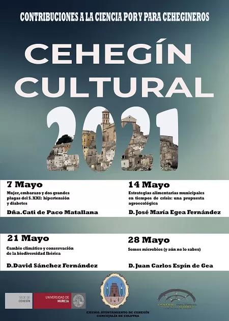 El próximo viernes, 7 de mayo, comenzará el ciclo de conferencias 'Cehegín Cultural', organizado por la Concejalía de Cultura, dirigida por Juan Martínez, y la Sede de la Universidad Permanente en Cehegín, cuyo director es Salvador Ruiz.